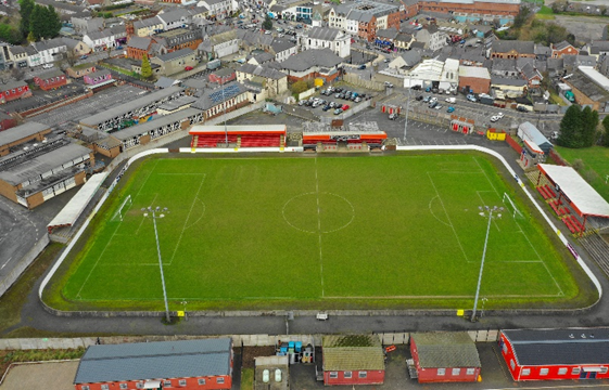 The club commissioned a business plan in 2014 for the provision of an artificial pitch, upgraded floodlighting, new business and community facilities, and a 200 seat grandstand. Planning was approved for the first phase of this development but the anticipated funding mechanism never materialized, due to the collapse of the Executive in 2016. Planning approval was renewed in 2019. The anticipated funding mechanism has since re-emerged but has been a ‘political football’ and has, as yet, not become available for applications. The club have continued to pursue other funding avenues for the original plan but have so far been unsuccessful. Last year the club secured a loan to upgrade the floodlights to a modern LED system.