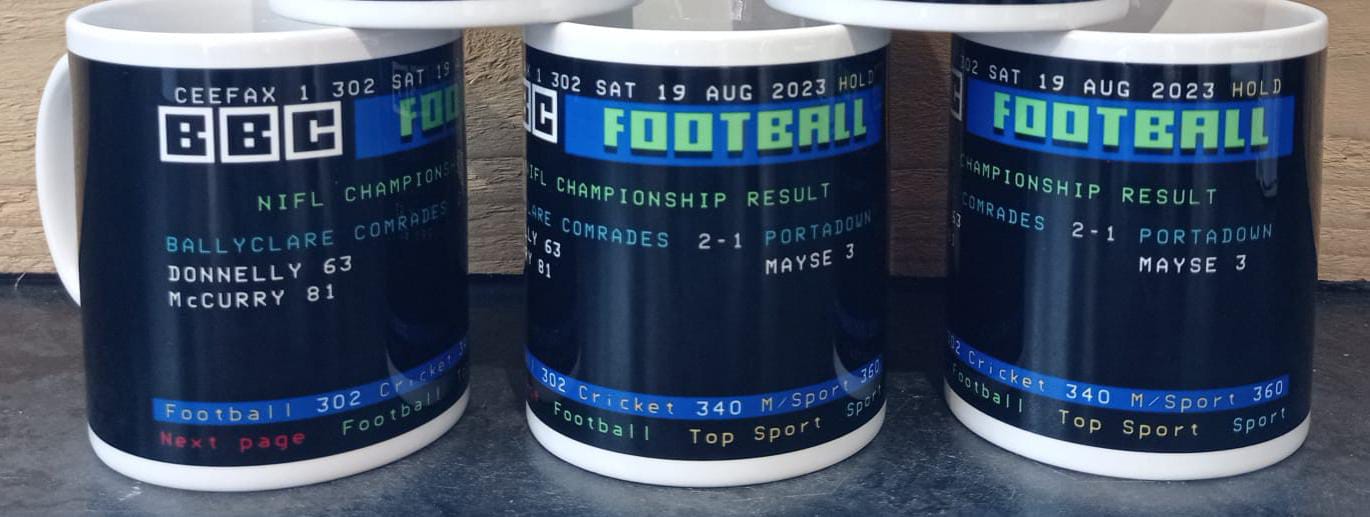 Be the first to review “Ballyclare Comrades 2-1 Portadown Ceefax Mug”